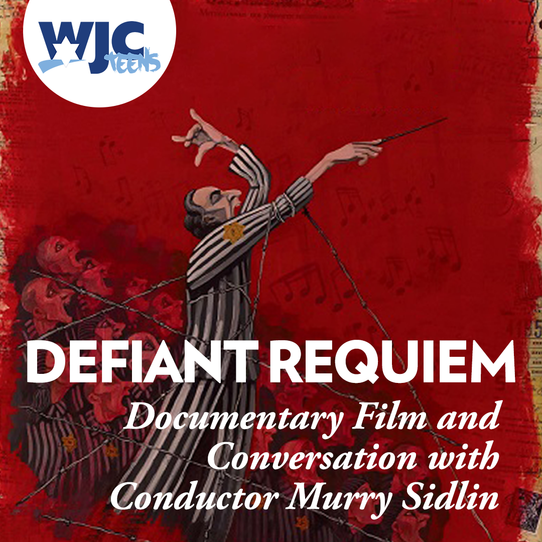 On the anniversary of Kristallnacht, WJC Teens will watch a short film documenting the remarkable story of a brilliant young Czech conductor, Rafael Schächter, and the one hundred and fifty fellow prisoners at the Terezín concentration camp whom he led in learning and performing Verdi’s Requiem. Murry Sidlin is a widely acclaimed conductor and the creator of Defiant Requiem: Verdi at Terezín, a concert program honoring the heroic musicians who defied the Nazis through their music; he has conducted Verdi’s Requiem at Terezín and around the world. Following the screening, Mr. Sidlin, also President and Creative Director of the Defiant Requiem Foundation, will speak with the teens about the film and the events it portrays. Emily Natbony, a WJC congregant who is now Education Program Manager at the Defiant Requiem Foundation, will join Mr. Sidlin in conversation with the teens.