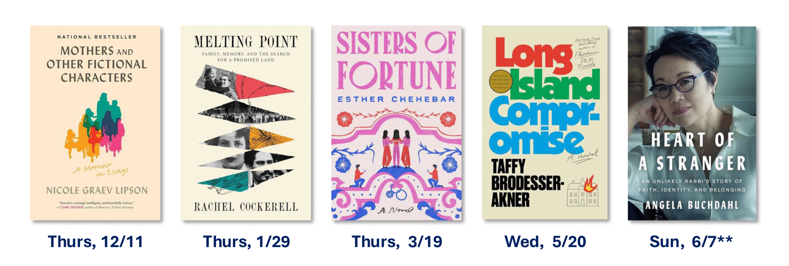The Hendel Library proudly offers a year of literary delights for you to explore new Jewish titles through the National Jewish Book Council. Pop in to one, any, or all book club-like experiences. Each conversation is paired with thematic edible delicacies! Open to all WJC readers!